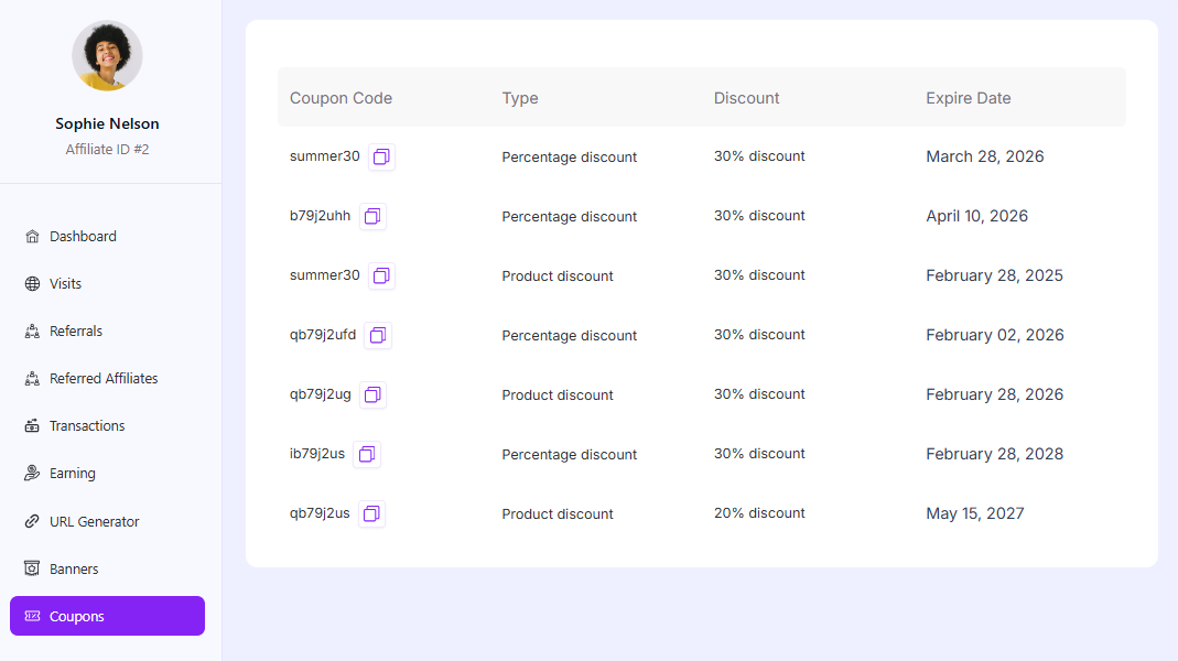 4. Your affiliate will find this coupon in their Affiliate dashboard, Coupons tab.