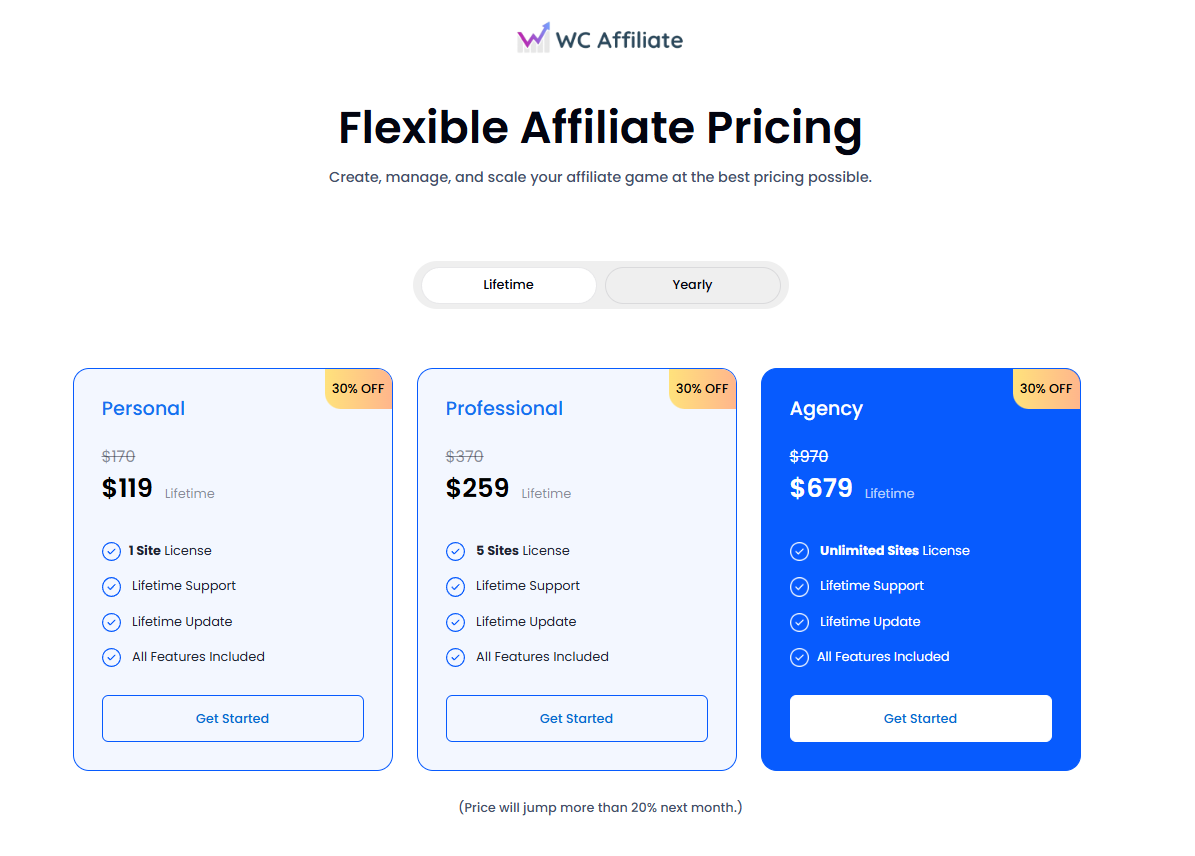 - Visit the WC Affiliate Pricing page.